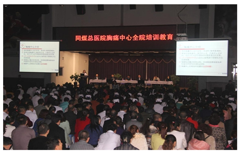 医院分批分次对全体员工进行培训,并组织专家团队对基层网络医院进行培训教育,普及胸痛中心概念,教育胸痛中心相关人员。