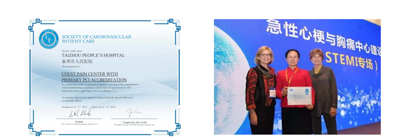 2015年12月17日,泰州市人民医院胸痛中心通过美国胸痛中心认证,成为我国首个通过美国胸痛中心最新V5标准认证的医院。